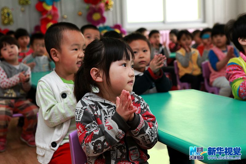 3月18日,在中国民航大学幼儿园内,孩子们在认真听课