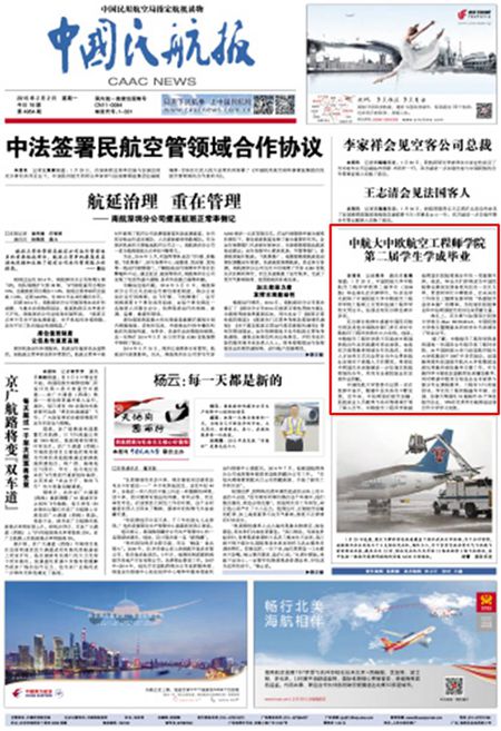 《中国民航报》1版:中航大中欧航空工程师学院第二届学生学成毕业