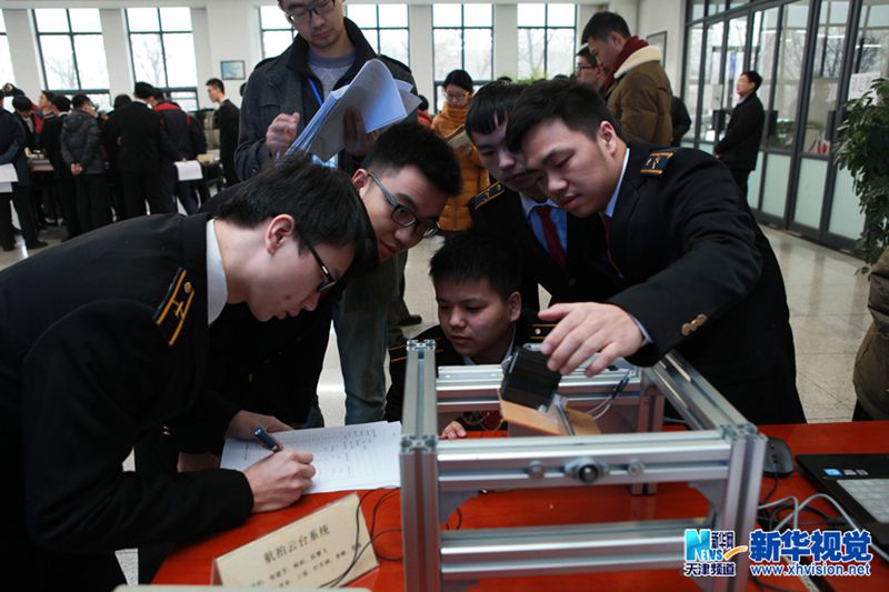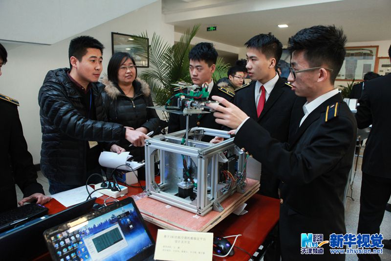 1月21日,中国民航大学2012级学生展示航拍云台系统