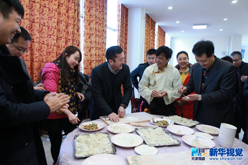 新华网天津1月4日电 2015年1月1日,中国民航大学教师、学生代表与后勤员工齐聚食堂,包饺子迎新年。据介绍,“饺香团圆暖冬日 民族情深满校园”元旦包饺子主题活动始于2001年,在中航大已有15年历史。今年,该活动被赋予了“团圆 团结 自强 自立”的新内涵。