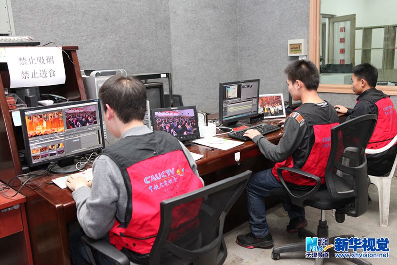 12月1日,中国民航大学记者团成员在挂牌12月1日,中国民航大学广播台的学生播音员在录制节目12月1日,中国民航大学广播台成员正在编辑节目航大学电视台的成员正在录制新闻12月1日,中国民航大学电视台的学生记者在编辑视频