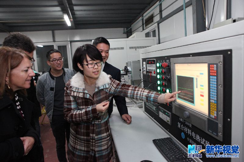 10月31日,法国高校专家参观中航大自主研发的复合材料电热试验机