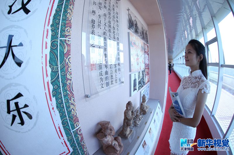 9月9日,中欧学院的法国老师演奏乐曲9月9日,中国民航大学民乐团学生弹奏古筝二重奏《但愿人长久》新建成60米艺术长廊供学生阅览