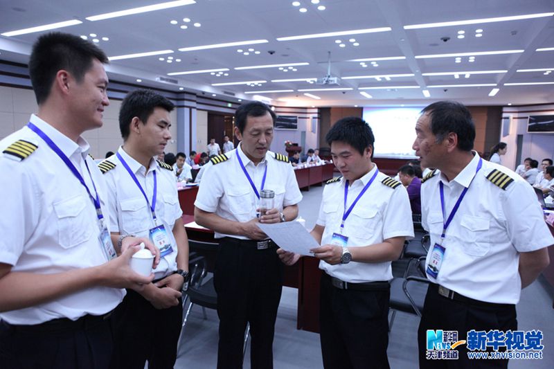 7月31日,会议休息期间,中国民航大学飞行教员讨论新的学习飞行学员驾驶执照规定