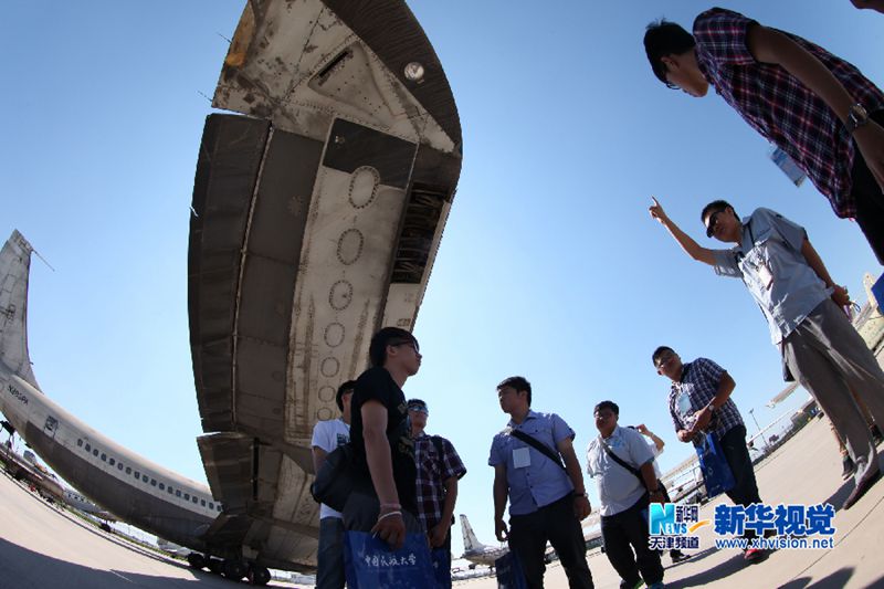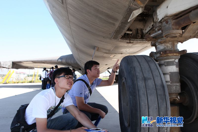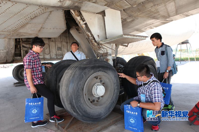 6月27日,台湾学生在中国民航大学停机坪上认真听课