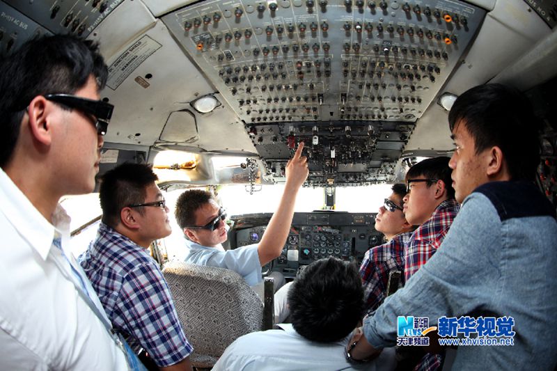 6月27日,台湾学生在飞机驾驶室上飞机电子系统课