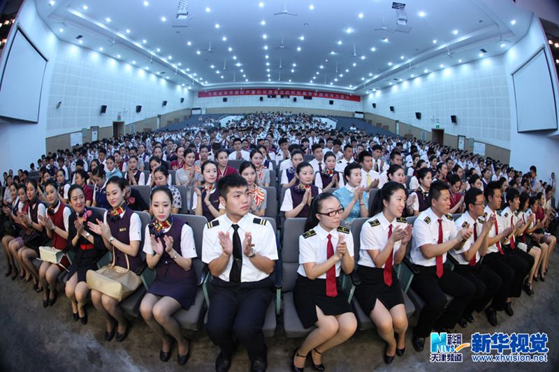 新华网天津频道6月20日电  6月19日上午,中国民航大学2014届专科毕业生毕业典礼于该校北院礼堂举行。中国民航大学2014届专科毕业生共1514人,就业率高居天津高校前列。653名乘务学院毕业生穿着所签航空公司乘务制服,上台领取自己的毕业证书,即将迎来他们人生新的篇章。