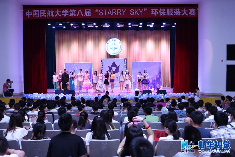 新华网天津频道6月17日电  6月15日,中国民航大学举办第八届“STARRY SKY”环保服装大赛决赛,倡导宣传环保理念,激起师生环保意识。