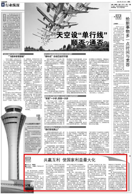 《中国民航报》2版:共赢互利 使国家利益最大化
