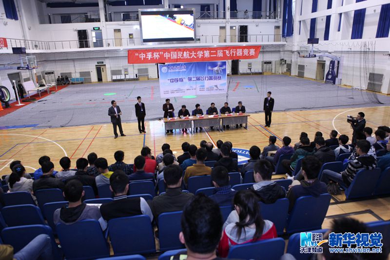 5月11日,中国民航大学举行第二届飞行器竞赛开幕现场