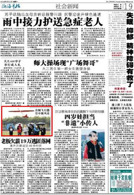 昨日,中国民航大学第二节飞行器竞赛在该校拉开帷幕。全校77组参赛队将进行旋翼类、固定翼类和创意类三大类作品的空中比拼。图为一名学生正在进行固定翼类飞行器的比赛。