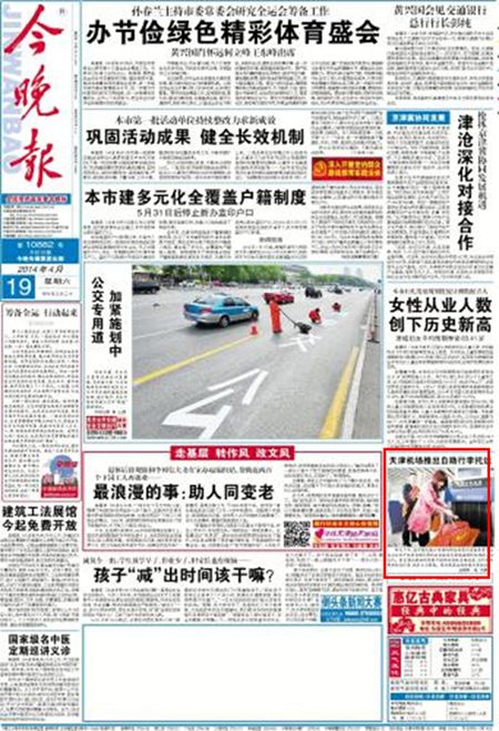 2014年4月19日《今晚报》1版: