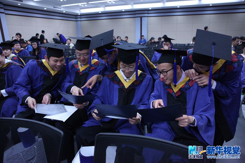 4月16日,在毕业典礼上,硕士毕业生获得中法毕业证书