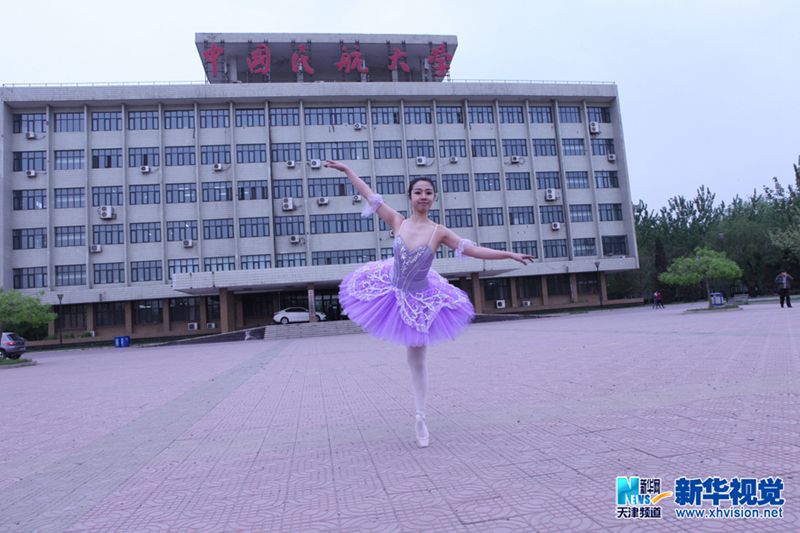 4月15日,在中国民航大学停机坪,李文妮进行芭蕾舞展示4月15日,在中国民航大学停机坪,李文妮进行芭蕾舞展示4月15日,在中国民航大学北校区第一教学楼广场,李文妮进行芭蕾舞展示4月15日,在中国民航大学南校区千禧湖,李文妮进行芭蕾舞展示