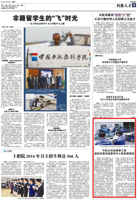 《中国民航报》5版:中航大机务维修工程虚拟仿真实验教学中心获批国家级