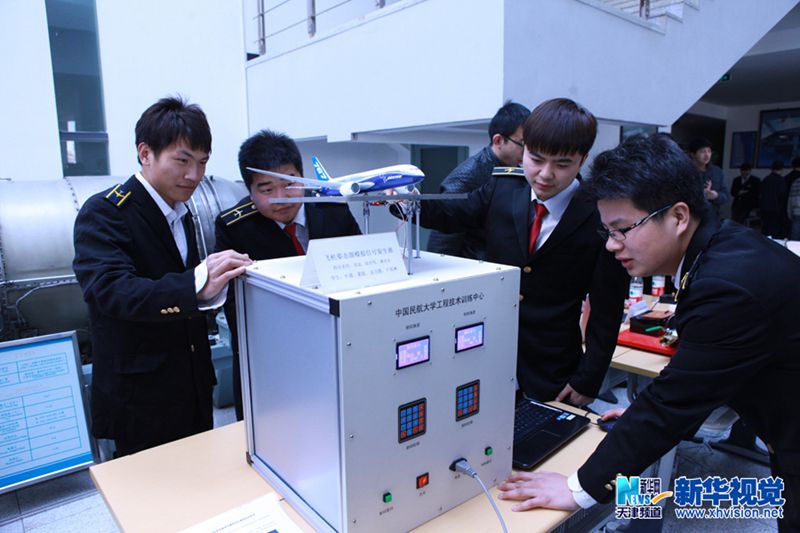 3月15日,中国民航大学学生展示飞机姿态模拟信号发生器。