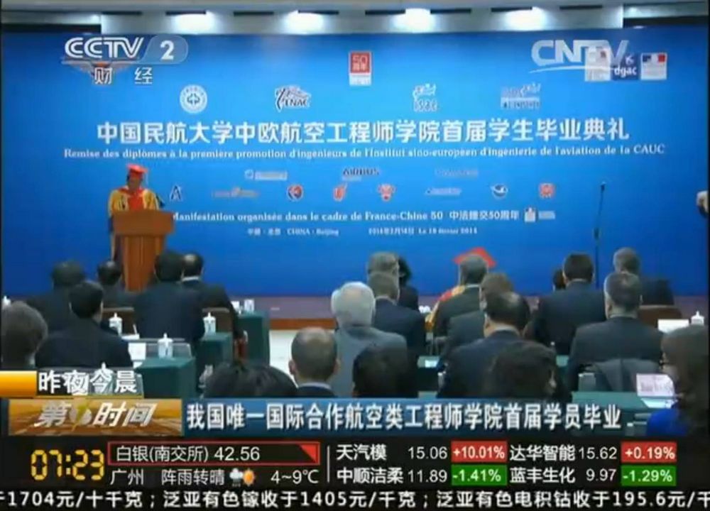 中央电视台2月19日上午7时在央视财经频道《第一时间》播出《我国唯一国际合作航空类工程师学院首届学员毕业》的新闻报道。