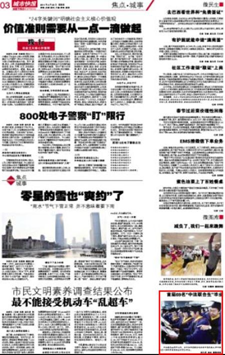《城市快报》3版:首届69名“中法联合生”毕业