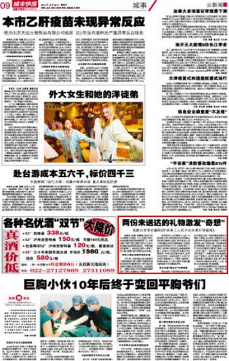 本报讯(记者 刘晓艳)在近日团中央等部门评选的“2013全国大学生社会实践评选活动优秀团队”中,中国民航大学的“爱心筑梦”农民工子弟小学支教团队获得优秀团队。尽管支教团队获奖了,但队员们却有一桩未了的心愿,这源自他们承诺的44份礼物。