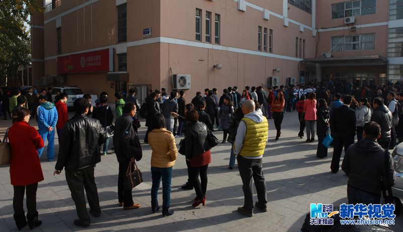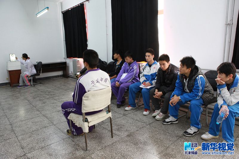 11月15日,参加招飞预选初检的学子正体检看视力11月15日,参加招飞报名现场