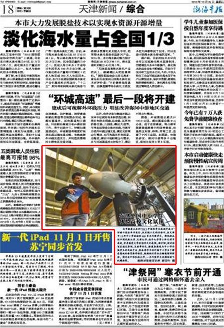 由市教委主办的“2013年国际学生校园开放日”活动日前在本市进行,在为期三天的活动中,在天津市13所中小学就读的200多名外国学生,将陆续走进中国民航大学、天津大学、南开大学等9所天津市高校,亲身感受大学校园的文化氛围。据介绍,该活动旨在通过参观、互动等形式,搭建各高校与中小学外国学生的交流平台,使在津学习的外国中小学生了解各高校的教育教学特色,鼓励他们毕业后继续留津深造。图为在中国民航大学,一名外国学生试图转动飞机螺旋桨。