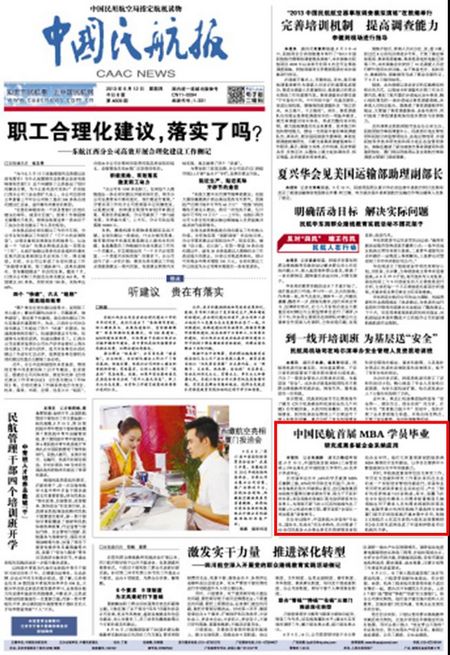 在首届毕业生中,64%的学员就读MBA后薪酬上涨,42%的学员职位有所提升。其中,来自海航的张久华被委以重任,出任海航集团加纳航空董事长兼首席执行官,致力于开拓非洲市场;来自南航的张晓江现为驻伊斯坦布尔负责人,为南航开辟飞往土耳其的航线作出了贡献;白云机场的林可茹、谭芳荣获“全国五一劳动奖章”荣誉称号。