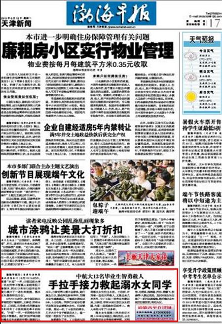 中航大12名毕业生智勇救人