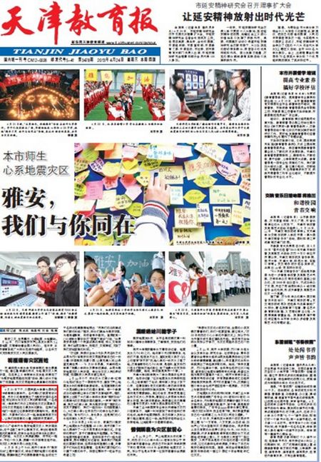 《天津教育报》头版:雅安,我们与你同在