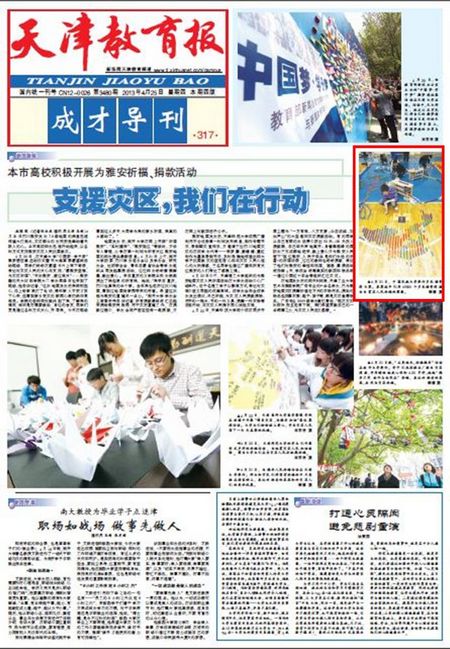 《天津教育报》头版:雅安,我们与你同在