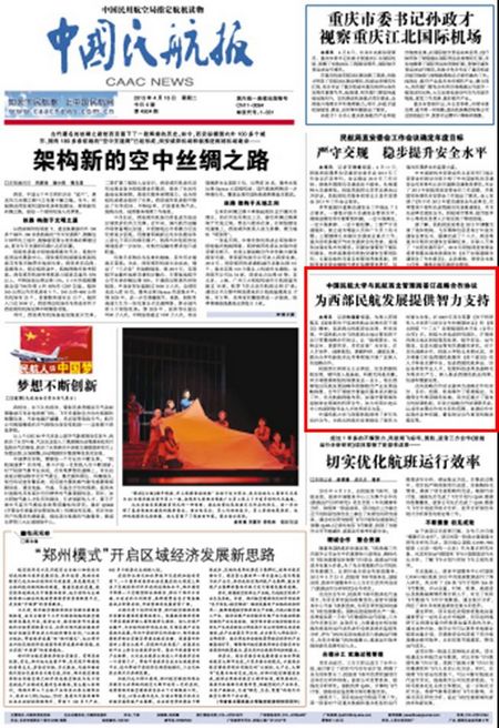 2013年4月16日《中国民航报》头版: