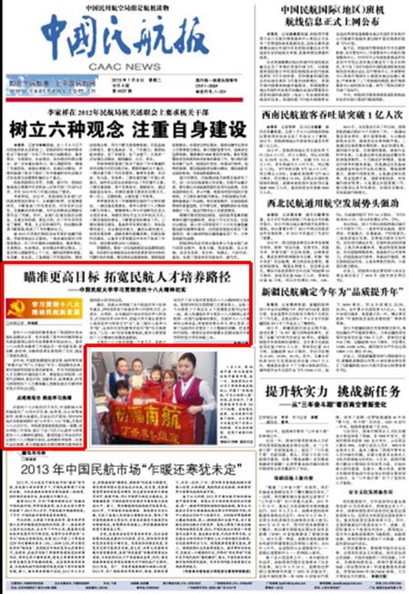 2013年1月8日《中国民航报》头版: