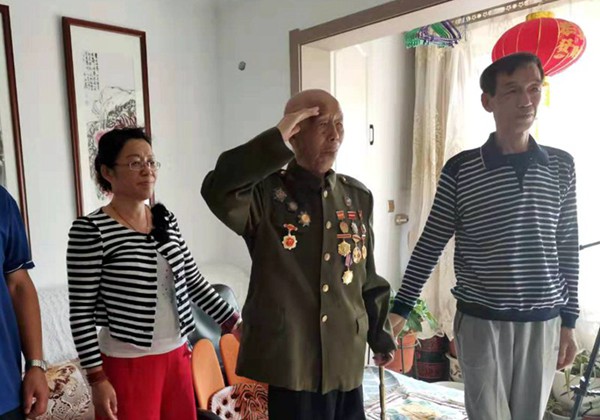 当国歌声响起时,居住在银川市兴庆区的101岁开国大校谭德本虽年事已高,但他仍执意要求家人将他搀扶起来,眼中满含热泪的对着电视中的国旗敬了一个标准的军礼。老人的女儿谭淑红告诉记者,知道有阅兵式,老人这些日子一直都很激动。今天早上六点就起床,佩戴齐12枚军功章,早早守在电视机旁,担心错过每一个精彩瞬间。“看到我们现代化的人民军队我感觉非常光荣,非常高兴。和我参军时相比,现在的武器先进了很多,这代表我们的祖国更加强大。我祝福祖国兴旺强盛,也希望青年人可以珍惜现在的生活,继续努力!”看到坦克兵、火箭军方阵后,谭德本老人高兴地说。