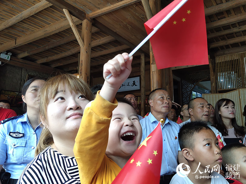 福建省寿宁县下党乡干部群众收看庆祝中华人民共和国成立70周年大会、阅兵式、群众游行活动。曹松摄