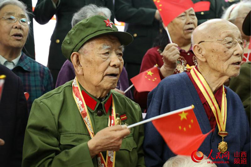 山西省军区太原第八干休所组织观看新中国成立70周年庆祝活动现场直播。王帆、董童摄