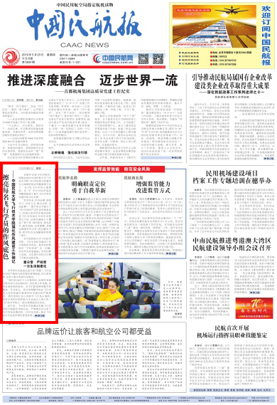2019年5月23日 《中国民航报》 头版 :