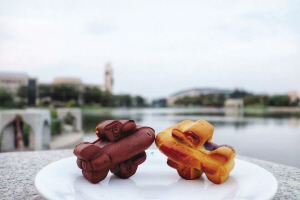 学校食堂负责人介绍,依旧有很多人对飞机元素情有独钟,“我们后勤就开发了一款飞机模型的月饼,2017年首次推出,1盒4块,1块飞机模型的月饼,2块校训月饼,1块校徽月饼,口味有枣泥、莲蓉、豆沙、紫薯,1盒26元。”由于飞机月饼太火,学校还推出限购政策,最后整个中秋卖出去了10万块。
