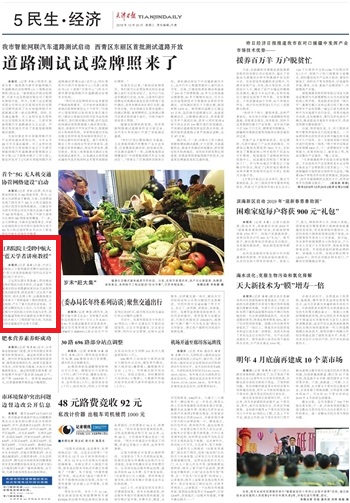《天津日报》:工程院院士受聘中航大“蓝天学者讲座教授”