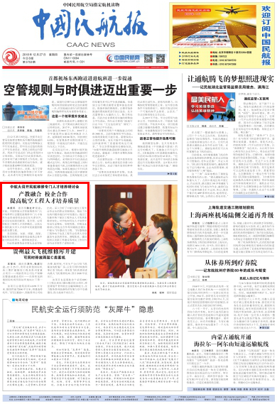 《中国民航报》头版:产教融合 校企合作 提高航空工程人才培养质量