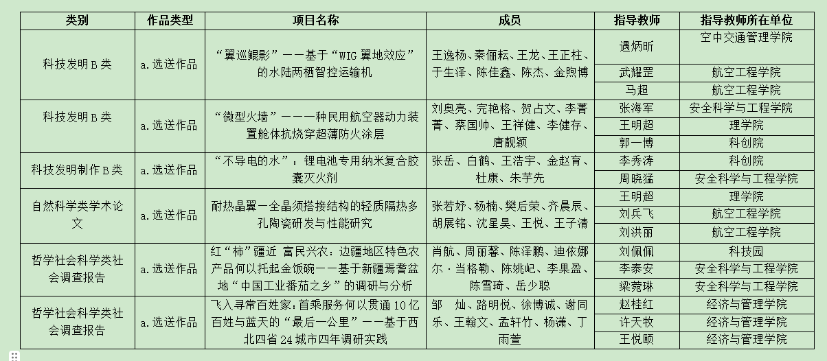 根据天津市“挑战杯”终审决赛的评审结果,我校6件作品被推荐参加国赛。经学校严格审核,作品不存在违反“挑战杯”竞赛主旨及章程、包括但不限于舞弊、抄袭、作假,将国家课题、教师科研成果包装成学生项目的各类行为。现将国赛推荐名单进行公示如下: