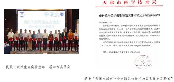 获批“天津市城市空中交通系统技术与装备重点实验室”,面向城市交通、物流重大战略需求,以未来城市空中交通载具研究为核心,聚焦自主规章(适航)运行的空中交通智能绿色航空器、飞联网的地空立体化智慧交通网络设施等开展研究,支撑天津市“1+3+4”产业体系中的航空航天产业发展。