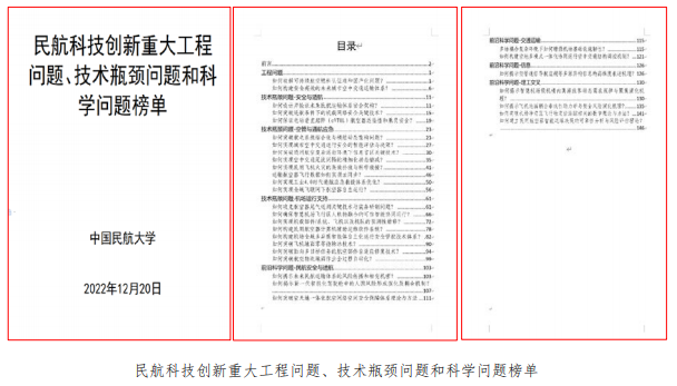学校遵循“目标导向、资源整合、交叉融合、重点突破”的方针,以学院为主体提炼重大前沿科学问题,围绕民航运输体系安全开展超前探索、牵引学科领先发展;以五大研究院的创新团队为主体提炼重大技术瓶颈问题,围绕机载网络安全、机场自主化运行安全管控、飞机地面零等待除冰、民用航空器深度维修的自主可控、民用飞机火灾的高效扑救与科学救援、空地一体化的航空器全信息实时传送、航空器尾气遥测等关键技术开展攻关,突破明晰智慧主线的技术瓶颈;以突破绿色高线和追求质效极线为目标,设立可持续航空燃料(SAF)重大工程,推出安全性认证、可持续认证新标准,促进全产业链商业成功;设立城市空中交通(UAM)重大工程,输出一套从智能化航空器设计、适航到运营的超前探索“中国方案”;设立国产大飞机运维支持重大工程,形成从持续性适航、智慧自主运维到应急保障的“中国标准”。为牵引重大项目的立项,重大平台建设规划和校企合作等方面赋予新动能,成效显著。