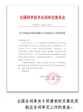2022年12月,全国科学技术名词审定委员会正式委托我校牵头筹建第一届全国民用航空名词审定委员会,并作为全国科词委授权的秘书处单位,开展我国民用航空名词的审定工作。这是由我校牵头成立的又一个全国性学术平台。
