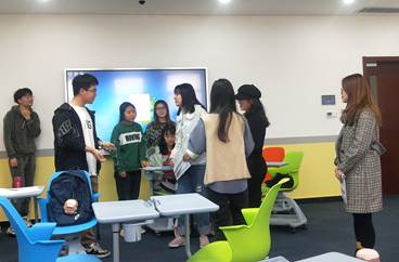 本学期的课程教学安排在智慧教室进行。与传统教室的固定陈设相比,智慧教室融入了智能设备、重构了教学空间。多屏显示,方便学生观摩经典戏剧,把握表演细节。可移动座椅,方便学生小组彩排和汇报表演。