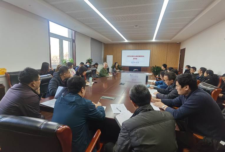 会上教务处介绍了大学生创新创业智能管理系统的建设背景、建设目标、系统功能及流程。系统实现了大创项目从征集-立项-任务书-结题的全流程管理,同时提供经费管理、提前结题管理、延期结题管理、成果管理、终止管理、项目异动管理等多种辅助管理功能;可满足中心管理员、各基地管理员、校内外专家、校内外指导教师、学生等多种角色用户使用;具有数据大屏监测功能,通过图形与表格的形式查看各数据的实时统计结果;打破物理空间和时间的局限,各级角色可通过手机端口进行各阶段的数据审核、数据查看等操作。