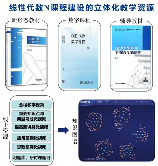 我校线性代数课程2007年获评天津市精品课程,2013年率先在CDIO与卓越试点班开展以教学效果为导向的讨论课教学改革,2020年面向新工科试验班推进教学内容体系改革,增加应用案例和课程思政案例,融合信息技术开展混合式教学。2021年获批天津市一流本科建设课程,2025年线性代数N课程获批第三批国家级一流本科课程。课程团队于2022年在高等教育出版社出版新形态教材《线性代数及其应用》和数字课程《线性代数》。