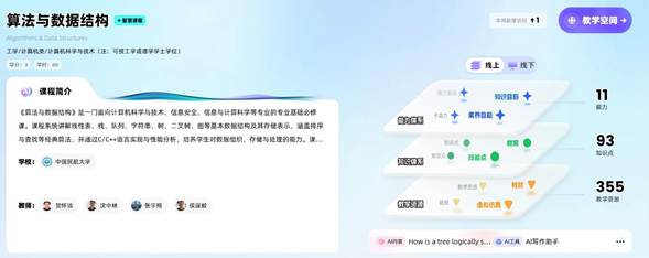 《算法与数据结构》课程被IEEE-CS/ACM在CS教程里列入核心课程之首,在我校是计算机科学与技术、人工智能、信息安全、信息与计算科学4个专业本科生的专业基础必修课。该课程建设经历了五个发展阶段:校级精品建设课、校级精品课、校级精品资源共享建设课、第二批天津市一流本科线下课、第三批国家级一流本科线上线下混合式课程。