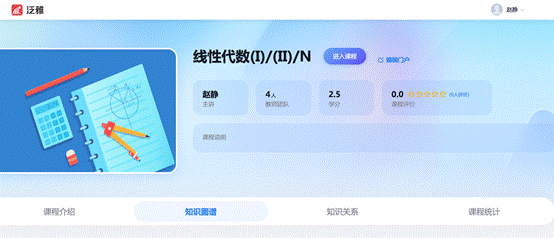 2007年评为天津市精品课程,2013年在CDIO试点班实施讨论课教学,2020年面向新工科和CDIO试点班开设“线性代数N”,增加应用案例和思政案例,建设全程教学视频、应用案例和思政案例微视频等教学资源,开展混合式教学,采取全过程多元化评价方式。2021年获批天津市一流本科建设课程,2022年在高等教育出版社出版教材和数字课程。2023年建成校课程思政示范课程,教材推荐认定天津市高校课程思政优秀教材。2023年《线性代数》课程构建知识图谱,打破教材章节边界,梳理知识点之间的逻辑关系,建立系统化知识点体系,实现内容可视化、结构化,满足学生个性化、选择性学习需求。