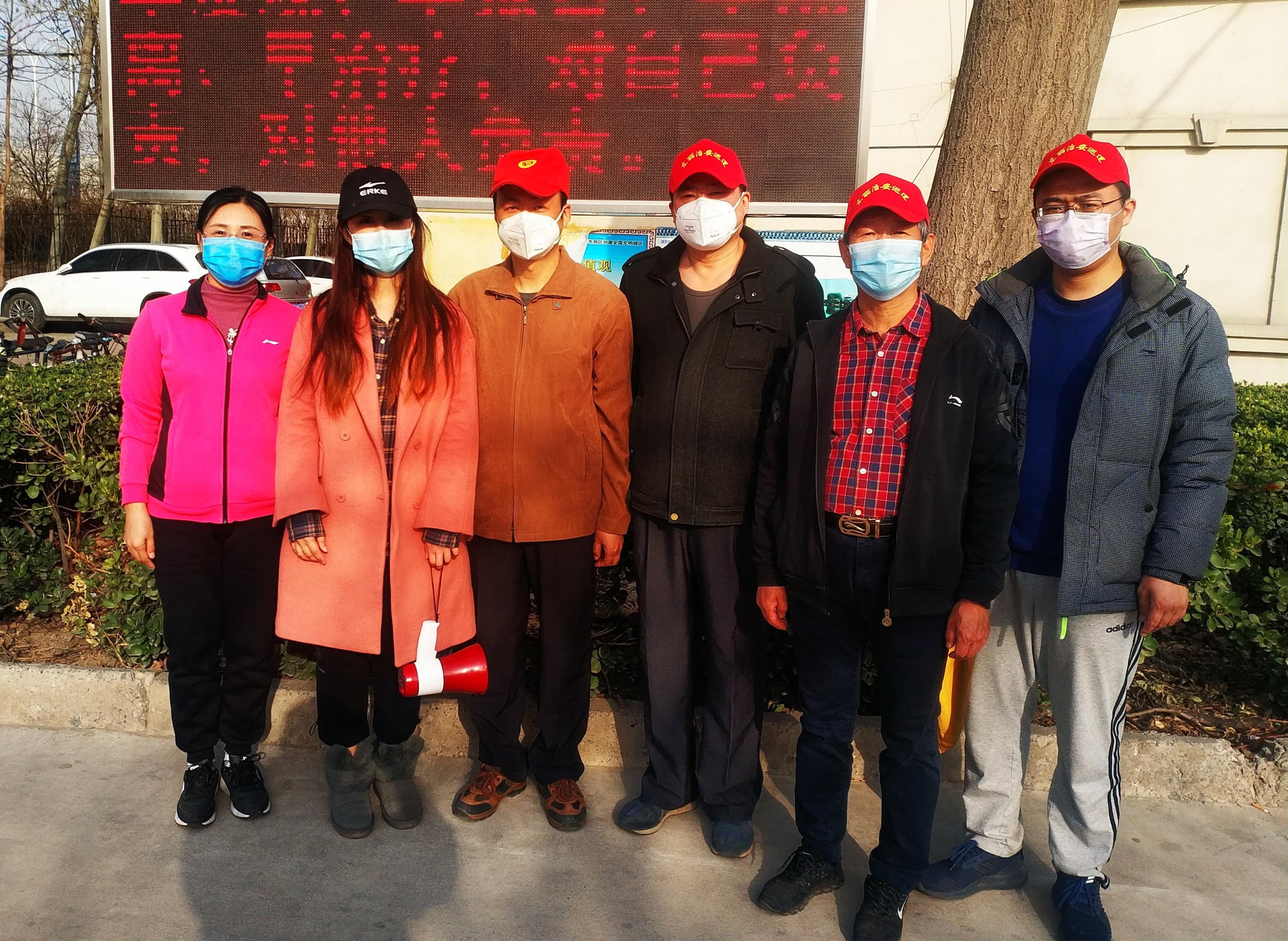 孙树贵(右一)参加社区疫情防控志愿宣传活动