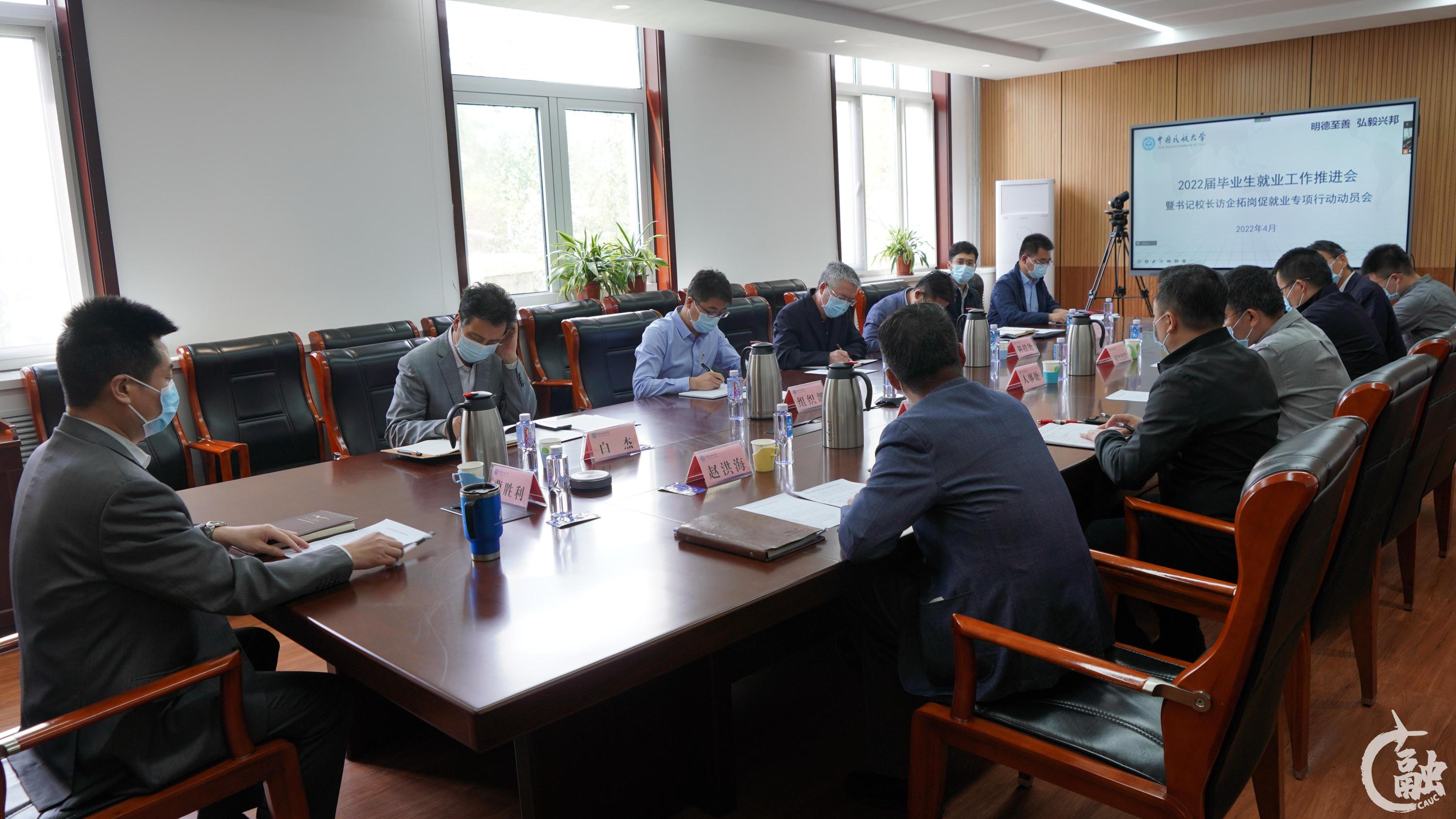 本网讯 4月14日,中国民航大学2022届毕业生就业工作推进会暨“书记校长访企拓岗促就业专项行动”动员会,按照疫情防控要求,以线上线下结合的方式召开。党委书记曹胜利,校长丁水汀,副校长白杰、吴仁彪,党委副书记赵洪海出席会议。校办公室、组织部、宣传部、学工部、招生办、教务处、研究生院、科技处、人事处、各学院主要负责人,毕业班辅导员参加会议。会议旨在深入贯彻党中央、国务院“六稳”“六保”工作决策部署,进一步落实教育部、民航局和天津市有关毕业生就业工作的具体要求,扎实做好疫情常态化防控下的毕业生就业工作。