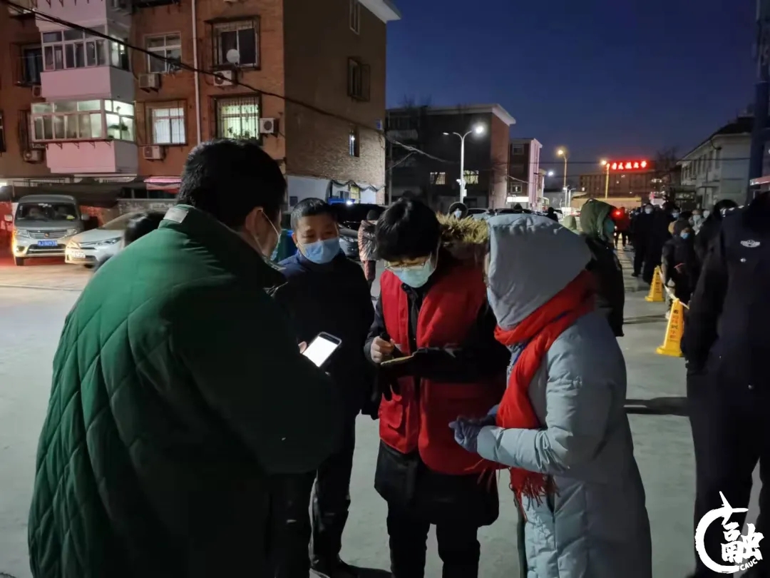深夜,顶着严寒的天气,张雅博老师依然在航大社区里四处奔走和忙碌着,协助医护人员和社区工作人员完成第二轮核酸检测:挨家挨户通知居民下楼做核酸,引导群众做好信息登记,维持现场秩序……“疫情就是命令,防控就是责任。作为党员和思政课教师,我们责无旁贷要响应号召、冲锋在前,以实际行动做好抗击疫情的‘螺丝钉’。”张雅博老师表示,“开学后,我还要把志愿者工作的经历讲给学生,让学生在思政课中感受伟大的抗疫精神,从中汲取奋斗的力量。”